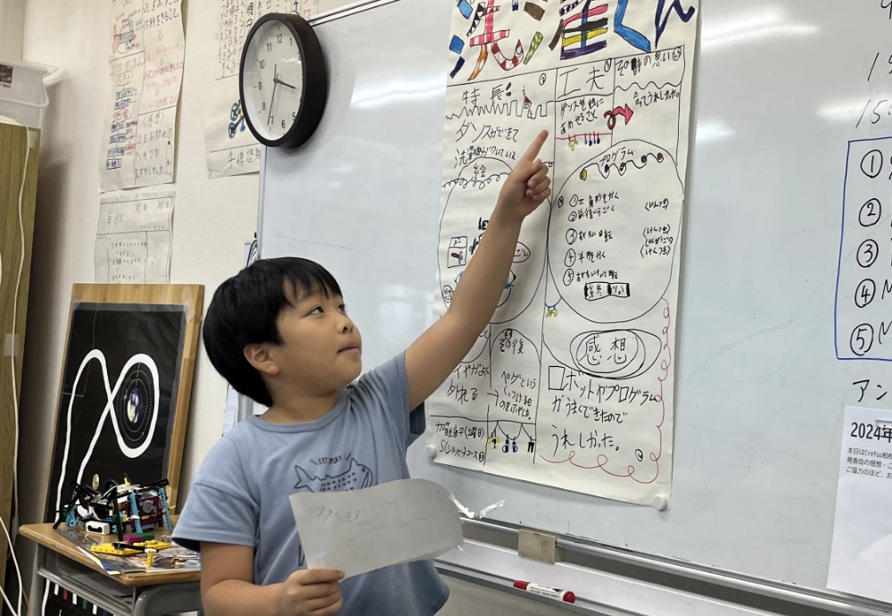 自分の作品の良いところや工夫した点などの発表会を通して、少しずつお子さまの自信を育みます。相手に分かりやすく伝えられる様、ポスターやスライドなども子どもたち自ら準備します。