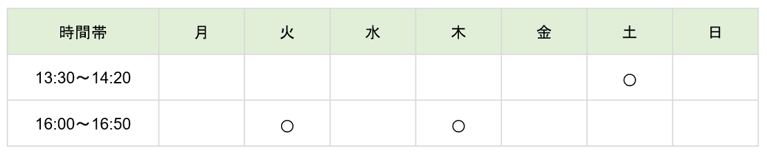 ※上記時間割は予定のため、変更となる場合があります。