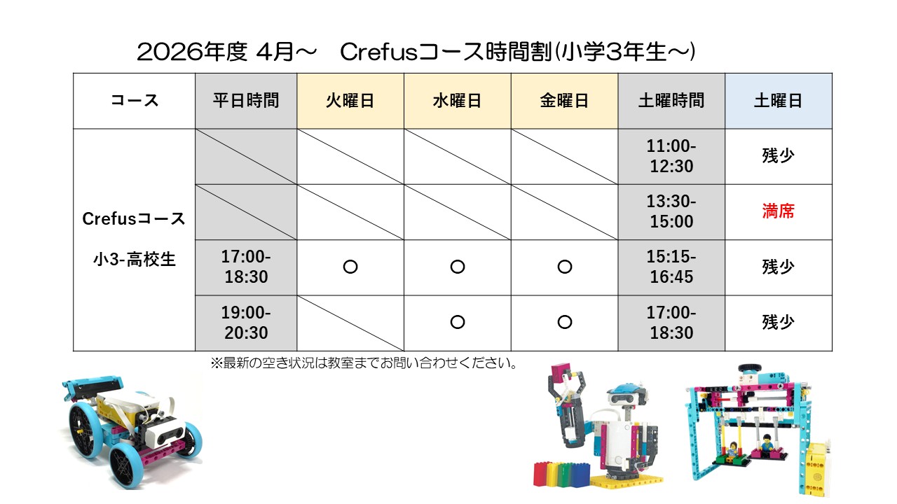 仙台校は2014年に開校した、本州では最も北にあるCrefusの教室です。幼稚園年長~高校1年生までの子供たちが、楽しく自分のペースでロボット製作とプログラミングを学び、それを通して将来を生きていく力を育てていくことを目指しています。2025年度4月からは、講師が1名増えて計4名の講師で教室の授業を行っていきます。LEGOが好き、ロボットが好き、動くものが好き、プログラミングに興味がある、理数系科目が好き、・・・・・これらに当てはまる子供たち、当てはまらない子供たち、多種多様な子供たちが通学しています。少しでも興味が沸いたら、ぜひ一度体験にお越しください‼