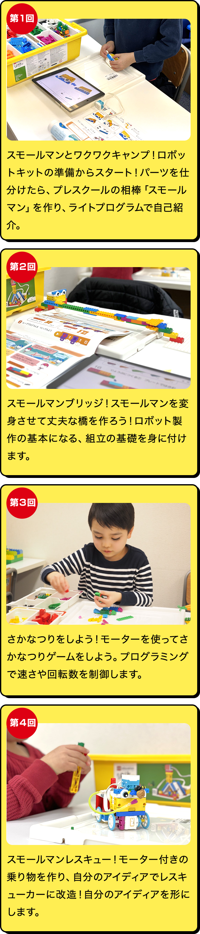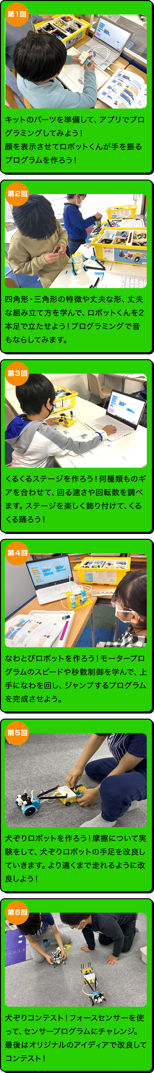 幼稚園小学校の子どもたちをはじめ、幼稚園の先生や大学の職員など幅広い年代へカリキュラムの提供や研修などを実施しており、ロボットを作り動かす中でプログラミング的思考を養うことのできる楽しい授業と好評をいただいております。